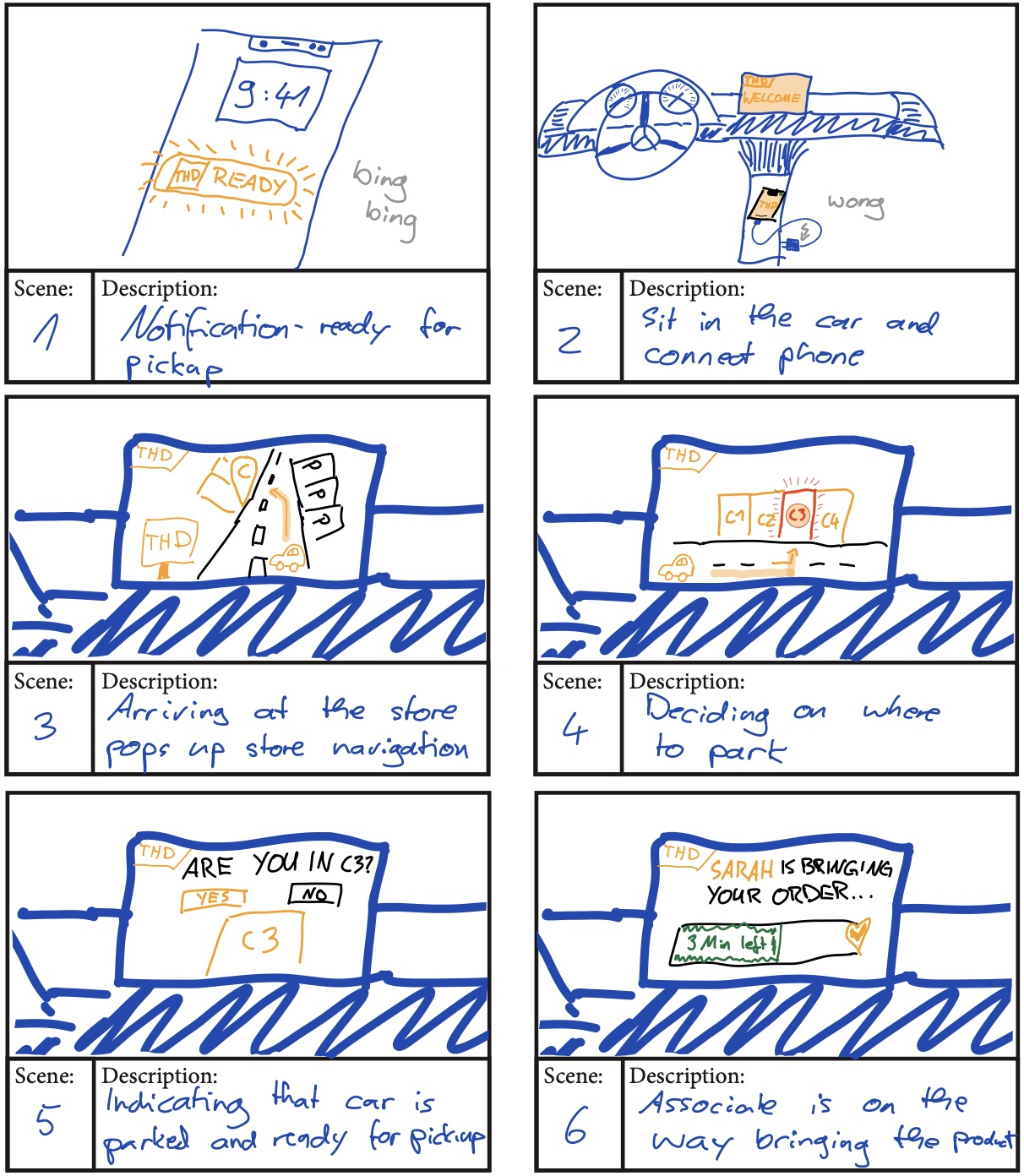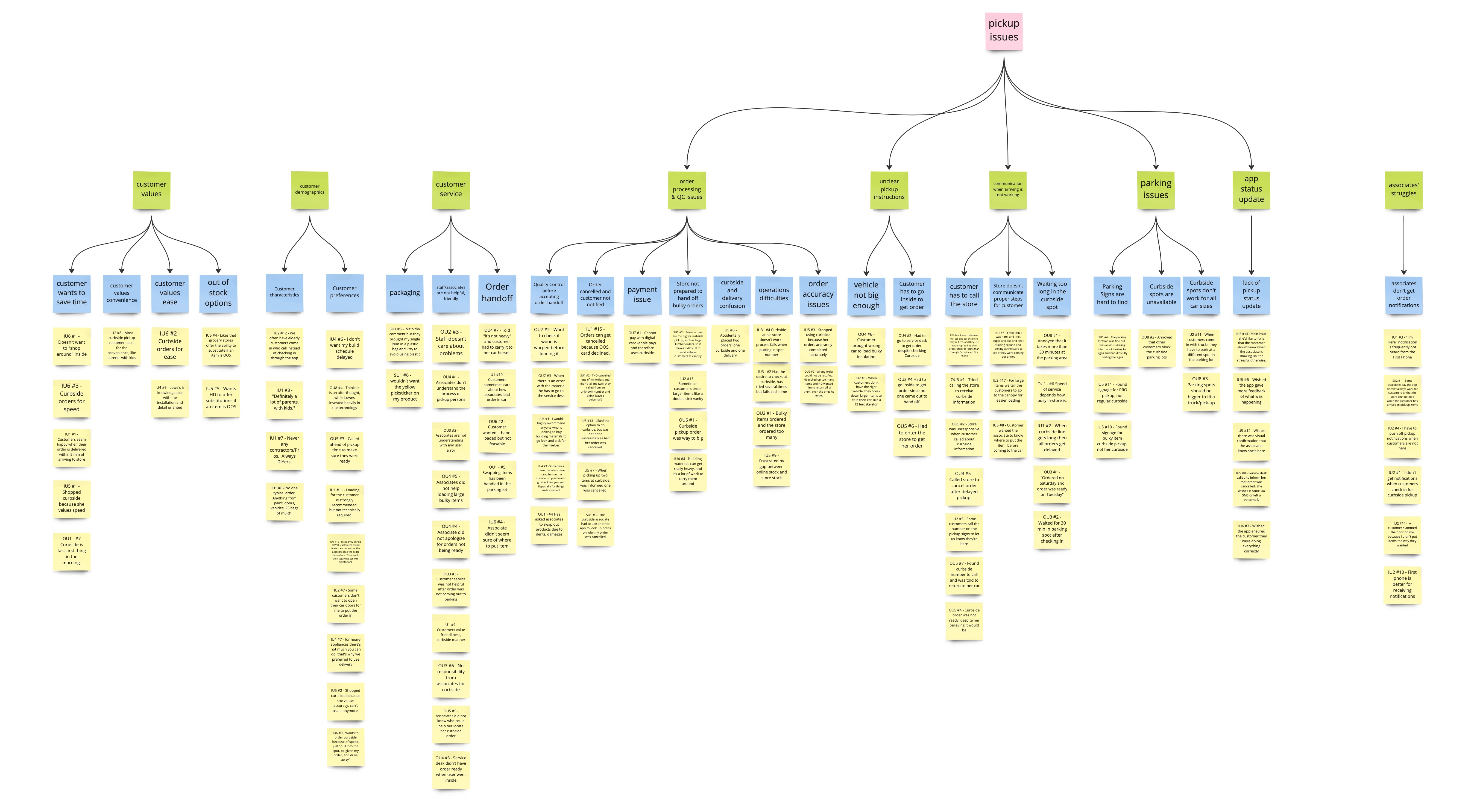 In addition, we visited a Home Depot store to talk to the associates and their points of view. We also executed a contextual inquiry following a Home Depot customer through their pickup process to discover ongoing pain points and problems in the process.