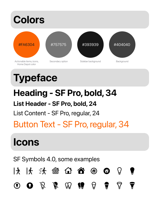 We could not use the Design System from Home Depot, so we created our elements to work with.