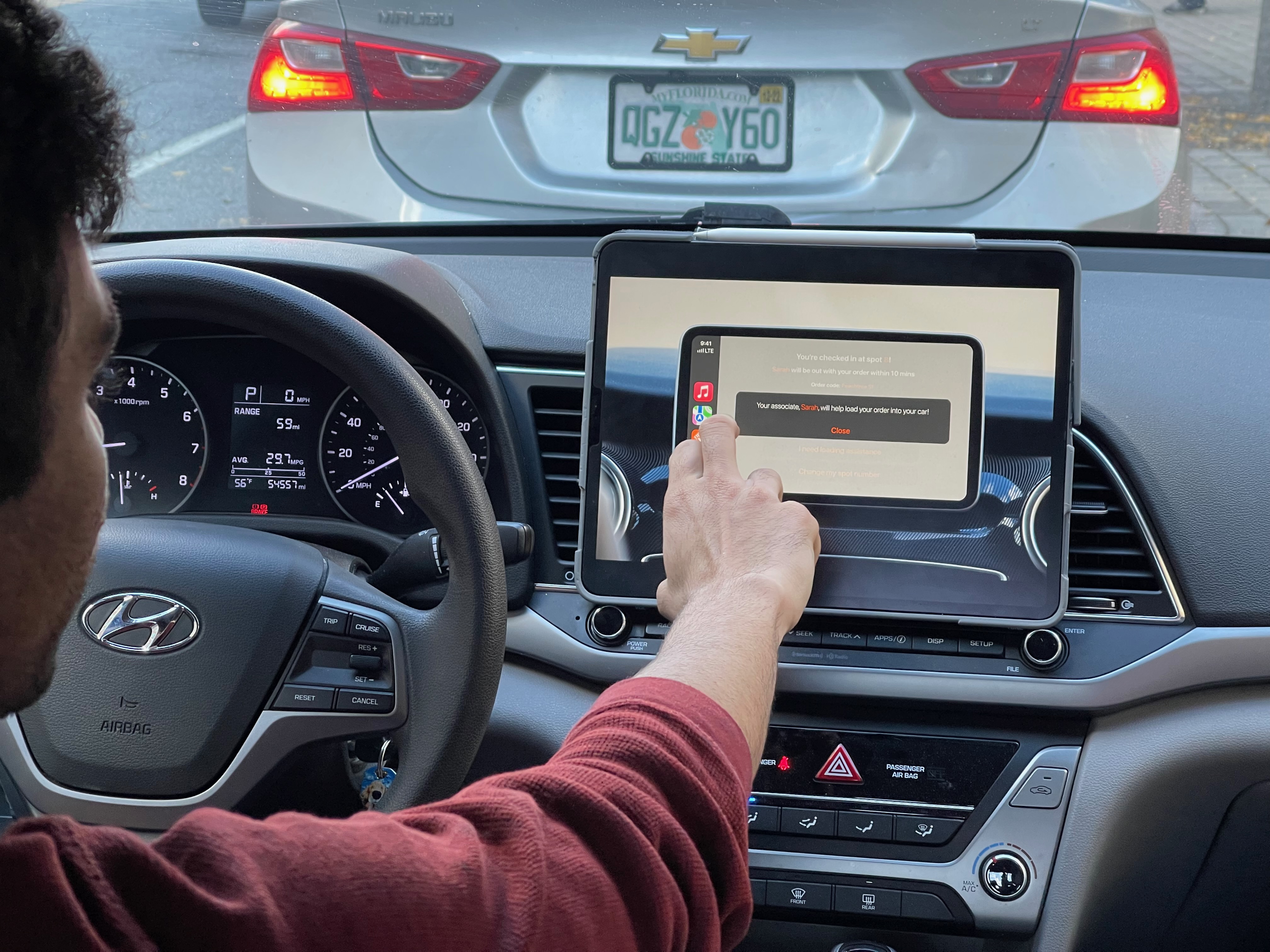 - Imagine you have parked your car in the curbside spot, checked in, and would like some help loading from the associate. Can you show us what you would do?